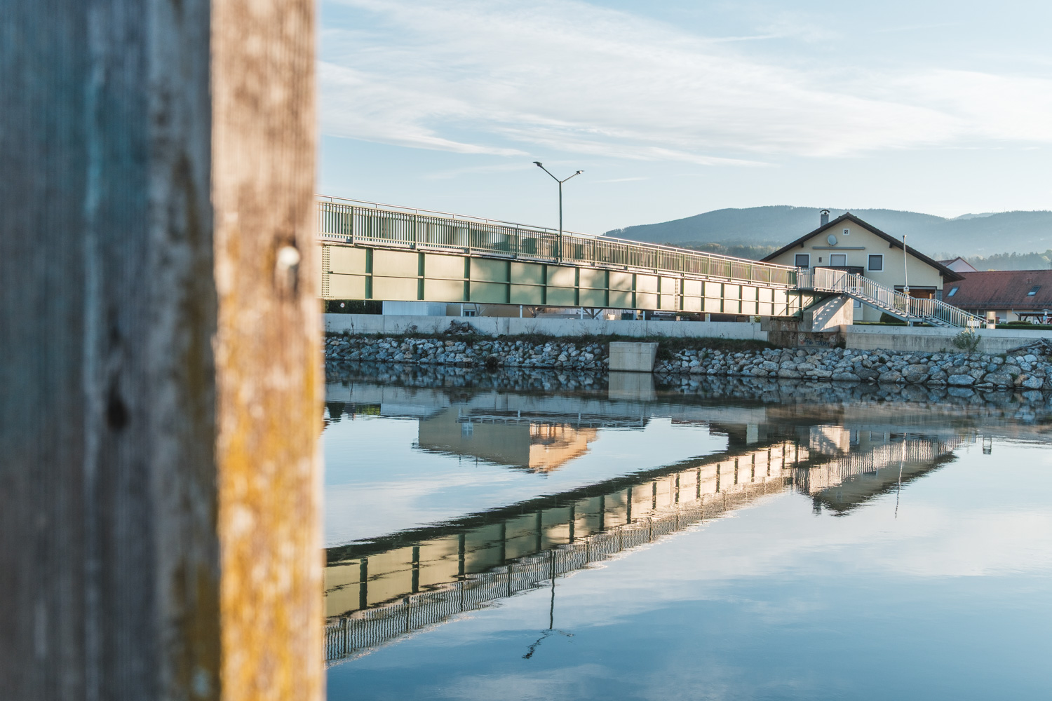 Die Streckenwanderung vom Bahnhof Judendorf-Straßengel zum Bahnhof Stübing führt entlang der Route der sechsten Etappe des recht neuen Grazer Berglandweges. Vom Bahnhofsgebäude gehen wir in Richtung Mur und entdecken auch schon die erste gelbe Wandertafel, die unsere Route anzeigt. Zunächst gehen wir durch die Siedlung, über den Mursteg und auf der anderen Seite des Flusses weiter durch ein Siedlungsgebiet. Sobald wir unterhalb der Pyhrn-Autobahn gegangen sind, verlassen wir Gratkorn, kommen an einem Schlössl vorbei und gelangen zum Kloster Maria Rast sowie zur Lourdeskapelle.