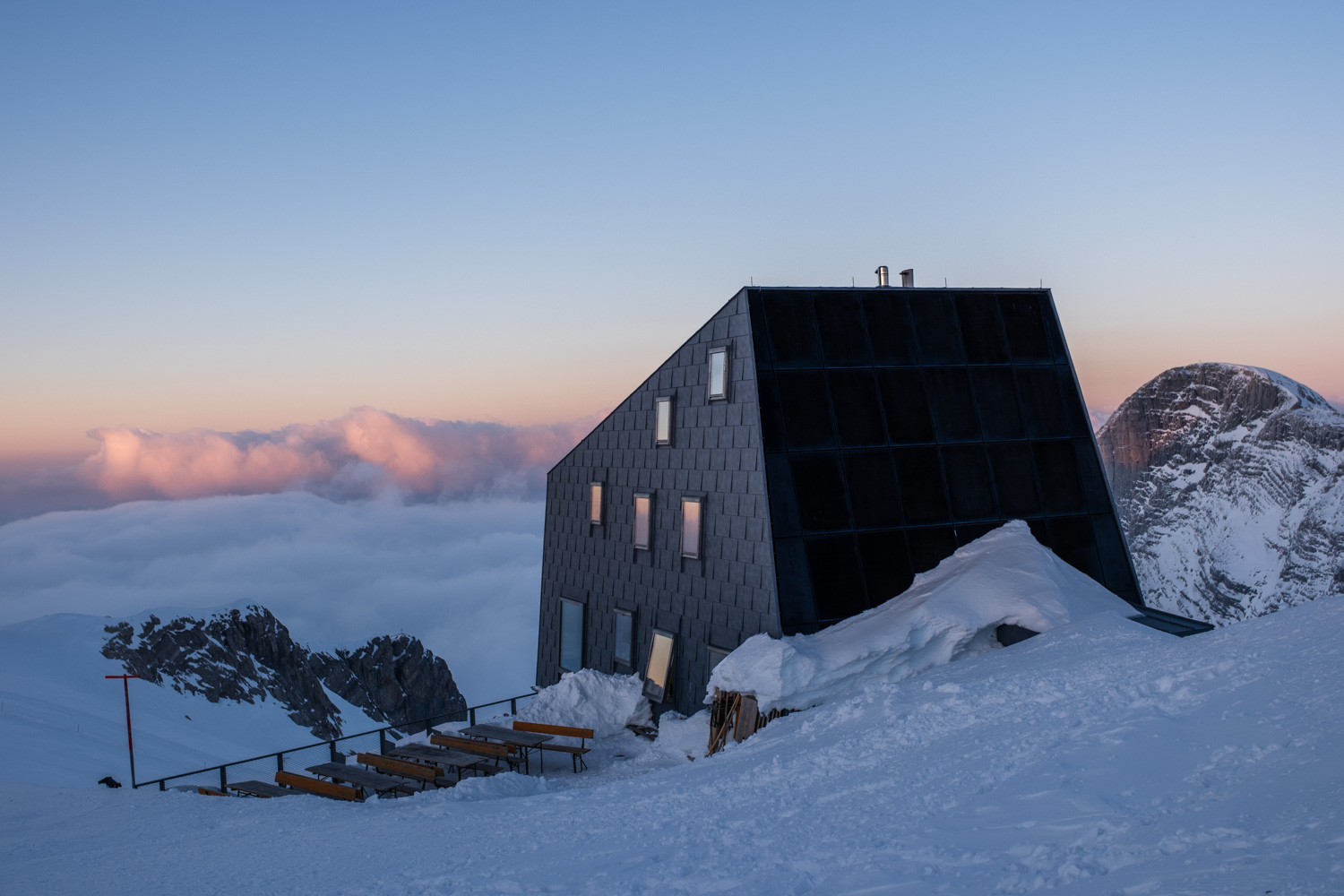 Eine aussichtsreiche Winterwanderung von der Dachstein-Bergstation zur Seethaler-Hütte, die über einen präparierten Panoramaweg durch hochalpine Gletscherlandschaft führt und mit beeindruckenden Ausblicken belohnt.