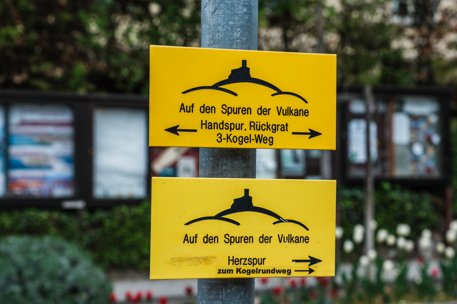 Vom Bahnhof Bad Gleichenberg halten wir uns in Richtung Norden. Rechts der Kaiser-Franz-Josef-Straße liegt der gepflegte Kurpark. Hier verläuft auch die Wanderroute Herzspur. Wir nähern uns dem Ortskern und halten uns an der Gabelung rechts, in Richtung Eiskeller, einem historischen Bauwerk. Weiter oben entdecken wir auf einem Hügel die Pfarrkirche Bad Gleichenberg. Der Kogelrundweg und der Mühlsteinbruch sind auf den gelben eckigen Wegweisern ausgewiesen.