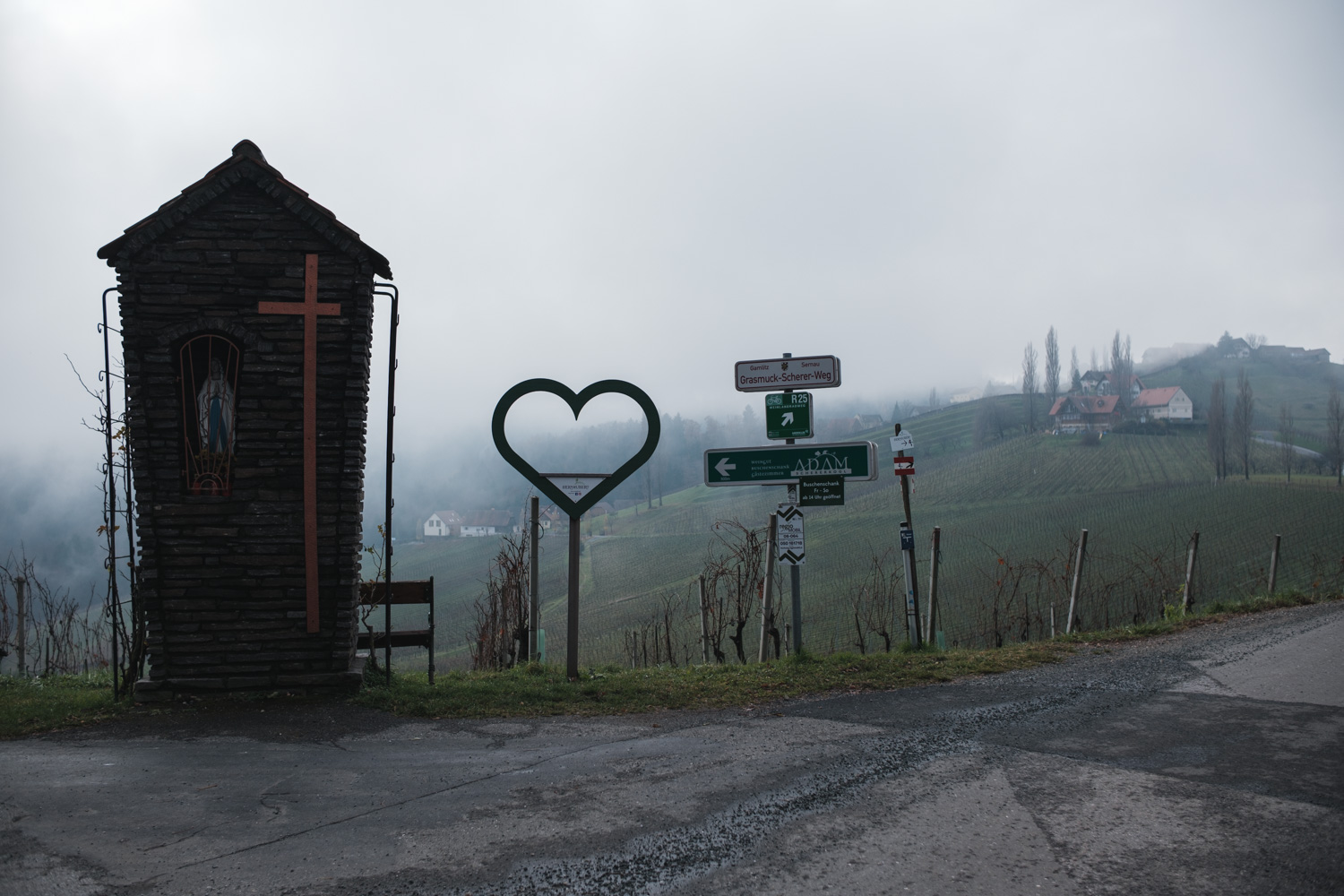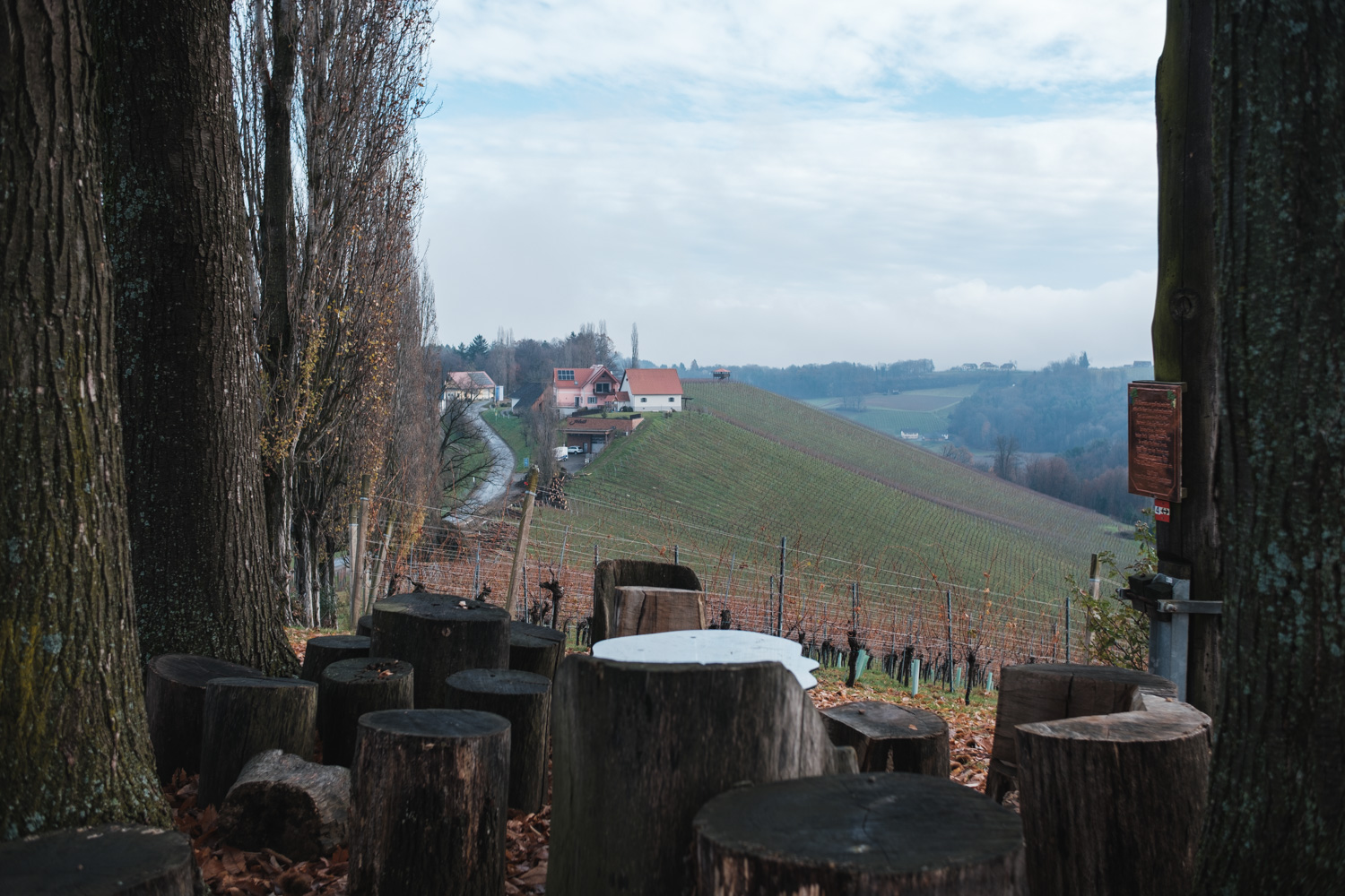 Unser nächstes Ziel ist Gamlitz, das wir den Wegtafeln folgend erreichen. Wir spazieren durch den beliebten Ort, vorbei am Marktplatz, der Tourismusinformation und der Kirche, bis wir nach links auf einen Wanderweg wechseln. Weiter geht es für uns entlang des Steinbachs, bis wir wieder auf eine Straße stoßen und auf der anderen Seite die ersten steilen Höhenmeter machen. Auf dieser Höhe wandern wir aussichtsreich entlang von Weinreben, vorbei an netten Verweilorten, wie dem „Platz der Begegnung“ und dem Weingarten-Pavillon mit Selbstbedienungsstation.