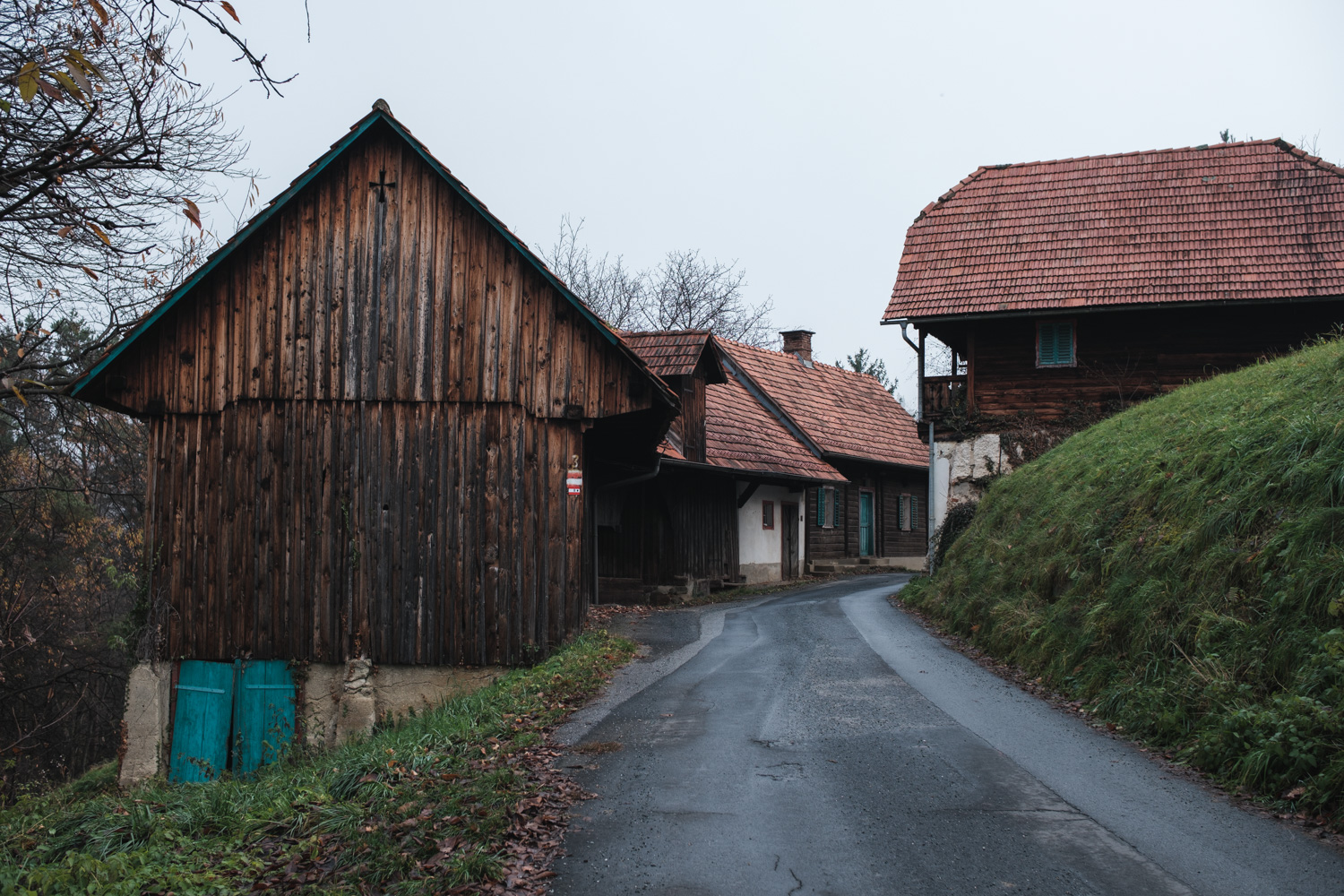 Der Rundweg führt uns bald schon wieder in Richtung Ausgangsort zurück. Grobe Orientierung gibt uns der Wegweiser „Gamlitz Sportplatz“. Weiterhin aussichtsreich geht es über den Schererkogl, vorbei an weiteren Weinbetrieben. Ein Weiler mit ganz alten Bauernhäusern und Wirtschaftsgebäuden lässt uns in vergangene Zeiten eintauchen.